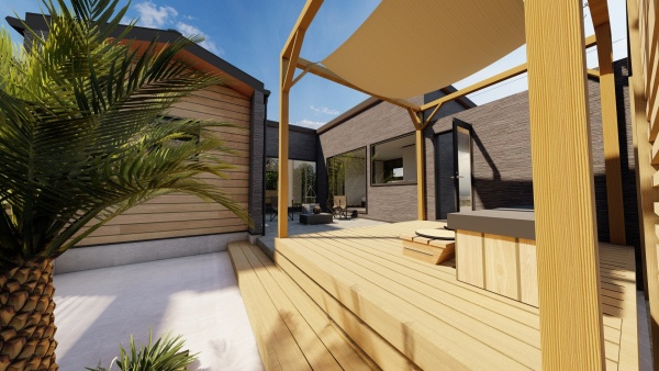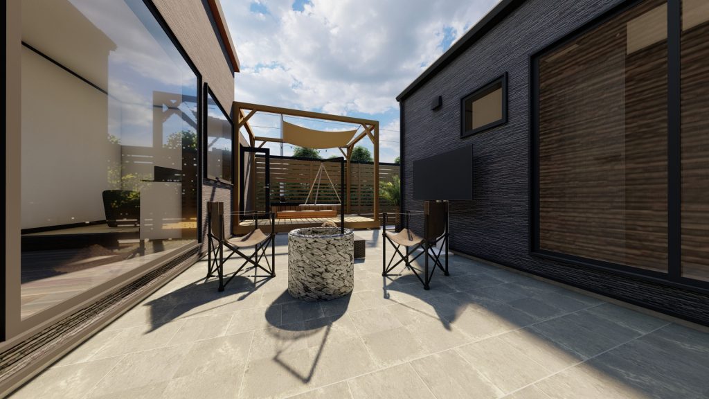 足湯・ジャグジー・バーベキューとアウトドアライフを楽しむ間取りになっています。