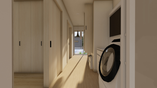 その他も洗面所には洗濯物の内干しスペースやそのまましまえる収納、外干しスペースとも隣接していて家事動線も考えられています。